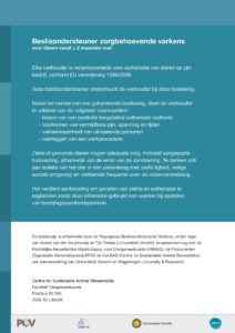 Om veehouders, en dierenartsen, te ondersteunen bij het nemen van beslissingen ten aanzien van euthanasie is in 2017 de beslisondersteuner voor jonge biggen beschikbaar gekomen. De Regiegroep Beslisondersteuner Varken heeft nu ook een beslisondersteuner voor zorgbehoevende varkens vanaf twee maanden leeftijd opgesteld. De Regiegroep Beslisondersteuner bestaat uit een groep dierenartsen, ethici en dierwelzijnsdeskundigen van CenSAS (een samenwerkingsverband van Universiteit Utrecht en Wageningen University & Research), Koninklijke Nederlandse Maatschappij voor Diergeneeskunde (KNMvD), Producenten Organisatie Varkenshouderij (POV) en Anoxia BV.