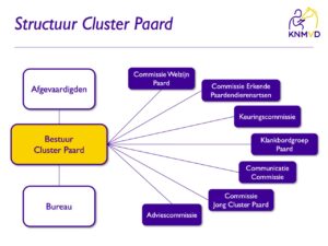 Afbeelding. Schematische diagram van de structuur van het Cluster Paard, met de zeven commissies.
