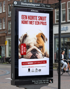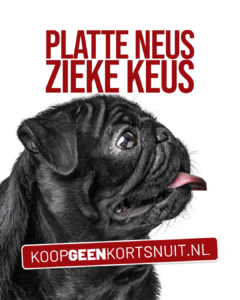 Op 23 augustus is daarom een grote consumentencampagne gestart met de oproep geen brachycephale hond aan te schaffen die niet voldoet aan de wettelijke criteria. Door de consumenten te wijzen op de vele gezondheids- en welzijnsproblemen en hoge kosten hopen de organisaties de vraag naar deze honden te verkleinen. Posteracties, sociale media en een campagnewebsite moeten mensen die van plan zijn een brachycephale hond te kopen, van gedachten laten veranderen. Via de KNMvD kunnen dierenartsen een informatiepakket bestellen met folders voor in de dierenkliniek. Kijk hiervoor op www.koopgeenkortsnuit.nl. Wil jij als dierenarts deze campagne onderschrijven? Dat kan! Kijk ook daarvoor www.koopgeenkortsnuit.nl of stuur een mail naar c.van.meurs@knmvd.nl.