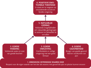 Bovendien dient een dier voldoende mogelijkheden te hebben om essentiële natuurlijke gedragingen te vertonen en zijn behoeften te vervullen (principe 5).Ten slotte moet het dier een emotionele toestand kunnen bereiken die het als overwegend positief ervaart (principe 6.) Voor dat laatste moet het dier kunnen reageren op omstandigheden in zijn omgeving. De leidende principes hebben als doel richting te geven; zowel in ontwerpprocessen als in het gesprek tussen verschillende stakeholders. Ze zijn niet geformuleerd als voorschrift of maatlat.